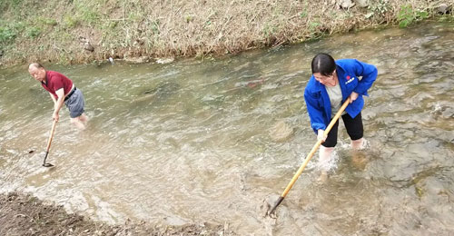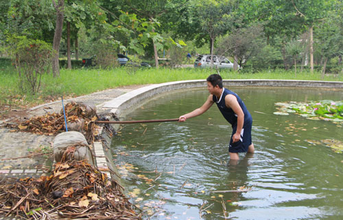 對(duì)水池內(nèi)雜物進(jìn)行清理