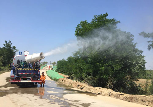 霧炮車對(duì)正在對(duì)礦山進(jìn)行噴灑降塵 |