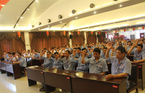 大會現(xiàn)場 6月28日上午,中國共產(chǎn)黨河南大地集團第二次黨員大會在集團北門會議室隆重召開!大會審議通過了河南大地集團第一屆黨委工作報告,選舉產(chǎn)生了中國共產(chǎn)黨河南大地集團第二屆委員會和紀律檢查委員會。 大地集團黨委委員、全體黨員、各分公司列席人員及部分職工代表參加了會議??h委組織部副部長潘廷韜應(yīng)邀到會指導(dǎo)。大會由紀委書記、集團副總裁張中民同志主持。 上午9時整,在雄壯的國歌聲中,大會莊嚴開幕。大會到會黨員120人。縣委組織部副部長潘廷韜首先代表縣委組織部發(fā)表了賀詞,預(yù)祝大會圓滿成功!賀詞稱,開好這次黨員大會,全面總結(jié)過去5年的工作,深刻分析面臨的機遇和挑戰(zhàn),科學(xué)確立未來發(fā)展的奮斗目標(biāo)和工作思路,這對于加強企業(yè)黨的組織建設(shè),為各項工作的開展提供有力的政治和組織保證,具有重大意義!