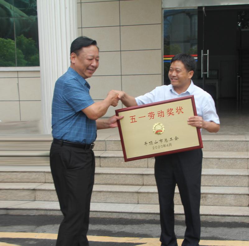 6月19日下午,寶豐縣人大常委會(huì)副主任、總工會(huì)主席崔建利,縣總工會(huì)黨組書(shū)記、常務(wù)副主席張艷峰等一行,受平頂山市總工會(huì)委托來(lái)到大地公司,為榮獲“平頂山市五一勞動(dòng)獎(jiǎng)狀”的大地公司授牌。集團(tuán)總裁王國(guó)杰代表公司接受榮譽(yù)獎(jiǎng)牌。