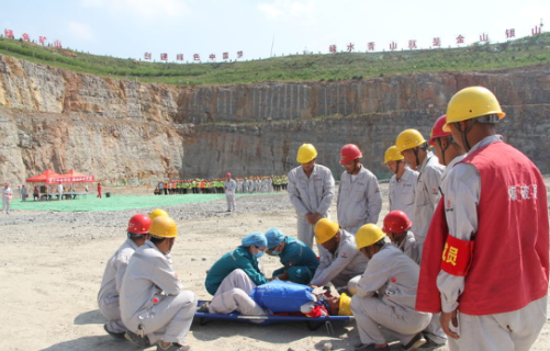 孔莊礦山開(kāi)展爆破飛石砸傷事故應(yīng)急救援演練