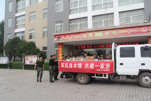 ![]() 軍民魚(yú)水情,共建一家親。8月1日上午,值中國(guó)人民解放軍建軍94周年之際,大地集團(tuán)總裁王國(guó)杰、副總裁趙中要一行帶著一份祝福和問(wèn)候來(lái)到駐七三四武警部隊(duì),向全體軍官表示慰問(wèn),共同慶祝建軍節(jié)。