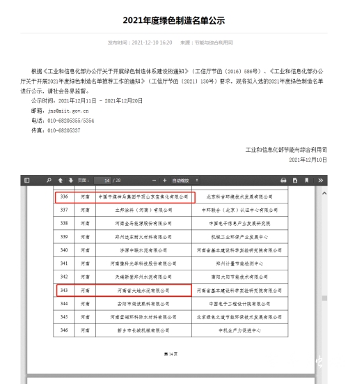 近日,工業(yè)和信息化部公布了國家第六批綠色制造名單,大地水泥摘得國家級“金字招牌”,成功入選國家級“綠色工廠”,代表著大地公司綠色可持續(xù)發(fā)展能力得到認可,綠色制造管理水平再上新臺階。