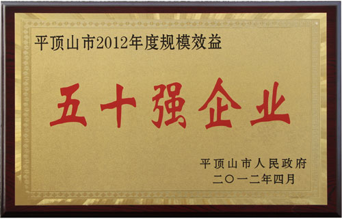 大地公司被平頂山市人民政府授予“平頂山市2012年度規(guī)模效益50強(建材行業(yè)10強)企業(yè)”榮譽稱號