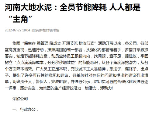 河南大地水泥:全員節(jié)能降耗 人人都是“主角”