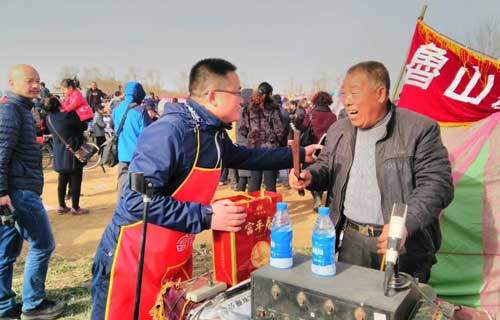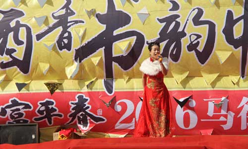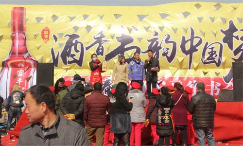 剛剛領到一等獎的帥哥 在通往會場的主干道上,跨路掛起的460只刻有“富平春”的大紅燈籠格外引人注目,為書會增添了喜慶歡樂的氣氛。隨著人群,筆者來到會場中心的說書現場,剛好碰上富平春酒業(yè)的領導正在為各個說書攤點免費發(fā)放F系列酒,這是富平酒業(yè)推出的又一獻情活動,成為今年馬街書會的又一大亮點。無酒不成書,詩酒趁年華,廣大說書藝人以酒助興,在說唱的間隙,酌一杯美酒下肚,那感覺就像李白斗酒詩百篇,說唱起來妙語連珠,栩栩如生,如潮水一般奔騰傾瀉,幽默風趣,引人入勝。