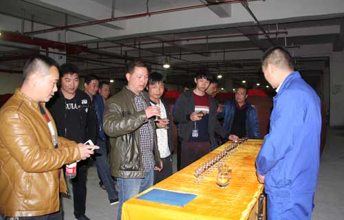 為加強對賈湖酒業(yè)的認知和了解,近日,集團分期分批組織大地員工去賈湖酒業(yè)參觀交流,現(xiàn)場體驗釀酒過程,品嘗美酒佳釀,品味獨特的賈湖酒文化,充分體現(xiàn)集團領(lǐng)導(dǎo)對廣大員工的關(guān)愛之情。 3月22日,筆者也隨團前往賈湖酒業(yè),一路上,大家談笑風(fēng)生,好不快活,猜想著酒廠的種種情景,那種輕松和愉快是工作中體會不到的。經(jīng)過一個多小時的顛簸,遠遠地看到一幢幢徽派風(fēng)格的建筑,到了到了,車上早有人迫不及待了。一下車,賈湖酒業(yè)的同志熱情地接待了我們,并帶著大家到廠區(qū)參觀,在傳統(tǒng)釀酒車間,大家認真聆聽了講解員關(guān)于釀酒的工藝流程,有的員工好奇的抓起一把原料聞聞,有的端起剛蒸餾出鍋的原酒嘗嘗,有的爭相拿起手機拍照,錄像。近萬平方米的地下酒窖,現(xiàn)代化的釀造裝備,存放近40年的木海老酒都引起了大家極大的興致,“這酒聞著真甜,喝著真香,”不時聽到有人一邊品咂,一邊夸贊。賈湖酒業(yè)深厚的文化氛圍,熱氣騰騰的生產(chǎn)場面,工人們高昂的工作干勁都給大家留下了深刻的印象。 為了給大家提供貼心服務(wù),賈湖酒業(yè)還為大家準(zhǔn)備了豐盛的晚餐,并為每人備了一份暖心水果。綿柔甘甜的美酒讓人回味無窮,如詩如畫的美景令人賞心悅目,最后,大家?guī)е缿俸筒簧?,踏上了返回的路?span lang="EN-US">