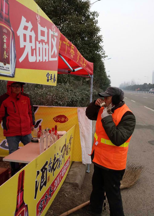 馬街書會(huì)入場口 河南省富平春酒業(yè)有限公司是河南大地集團(tuán)旗下集白酒科研開發(fā)、生產(chǎn)釀造、銷售服務(wù)于一體的國家大型企業(yè)。幾年來,公司在發(fā)展壯大的同時(shí),不忘回饋社會(huì),主動(dòng)承擔(dān)社會(huì)責(zé)任,積極投身于文化、教育、扶貧、環(huán)保等社會(huì)公益事業(yè),先后贊助“全國村長論壇會(huì)”,開展“愛心助考”“希望工程圓夢行動(dòng)”等一系列社會(huì)公益活動(dòng)。得到了社會(huì)各界的廣泛關(guān)注和熱烈好評。 暢游馬街會(huì),情濃富平春。為真心服務(wù)群眾,情暖四海賓朋,富平春精選多款美酒供您免費(fèi)任意品嘗,讓您真正體驗(yàn)傳承九千年的賈湖美酒之秘密,讓您在凜冽的寒風(fēng)中感受愛的溫暖,酒的熱烈。
