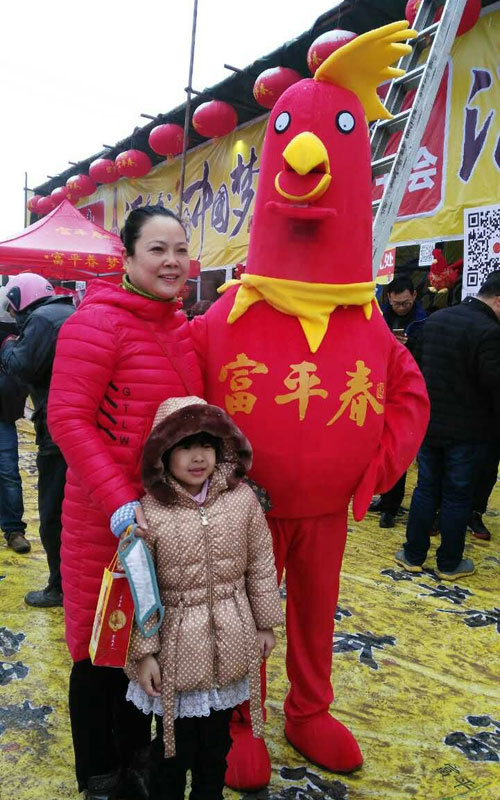 一位中獎(jiǎng)女士與吉祥物金雞合影 “非常感謝富平春為我們帶來了驚喜,帶來了情趣”,位剛剛中得一等獎(jiǎng)的小伙高興地把他中獎(jiǎng)的消息發(fā)到了朋友圈。