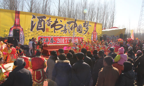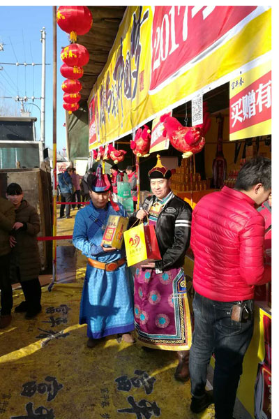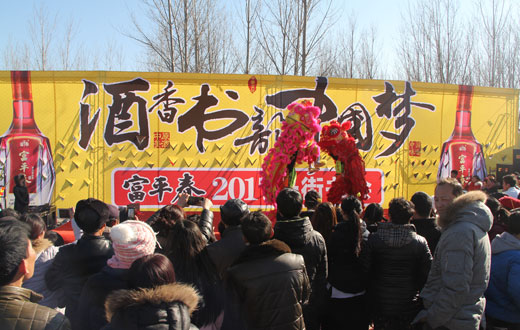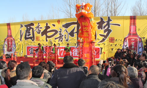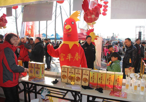 富平春馬街書會感恩大派送側(cè)記(二) 正月十三上午,筆者還未到馬街,就被一陣喧天的鑼鼓聲所吸引,在馬街書會入口富平春二號展臺處,一場盛大的文藝匯演正在精彩上演,這是富平春公司為回報社會,傾情百姓的感恩大派送活動現(xiàn)場。一邊是火爆的掃碼中獎活動,一邊是火辣的激情演出,吸引著八方來客蜂擁而至,把整個現(xiàn)場圍得水泄不通。 龍騰獅躍歌盛世,鑼鼓聲聲震乾坤。演出現(xiàn)場,陣容強大,場面壯觀的《龍騰九宵》《盤鼓鬧春》等節(jié)目,激越澎湃,催人奮進;驚心動魄,扣人心弦的高空舞獅、獅口噴字,不時地把匯演推向高潮,串燒、戲曲、民歌、舞蹈輪番上陣,場面熱烈,蕩人心魄,此起彼伏的掌聲、歌聲、笑聲、歡呼聲匯成了一片歡樂的海洋。期間,富平春還精心準備了撲克牌、吉祥物等精美禮品,與現(xiàn)場群眾進行現(xiàn)場互動,很受大家歡迎和喜愛。 隨著人群,筆者走進書會現(xiàn)場,大型彩虹門“富平春2017馬街書會”歡迎著八方來客,“天地同唱馬街書會,日月共醉富平春酒”等大紅條幅格外引人注目,路兩旁及書會現(xiàn)場掛滿了大紅的燈籠,這是富平春義務(wù)為書會做的精心布置,為書會增添了喜慶熱烈的氣氛。 在中華曲藝展覽館東側(cè)富平春主會場,人潮涌動,熱火朝天,品酒的、掃碼的、中獎的,場面火爆嗨翻天?,F(xiàn)場工作人員非常忙碌,為來客提供周到細致的服務(wù),兩個吉祥物金雞也顯得格外歡快,不時地向過路群眾問好,引來大家紛紛與其合影留念。在趕會游玩的同時,隨便拿起手機掃一掃,就會中得實實在在的大獎,那是怎樣的一種心情,激動、高興、感恩……怎一個“樂”字了得?!摆s快發(fā)送朋友圈,讓大家都來參與”一位中得一等獎的小伙立馬把他中獎的喜訊發(fā)到了朋友圈?!拔抑写螵劻恕薄案黄酱簽榇蠹?guī)砹藢嵒荩瑤砹饲槿?!”“富平春酒喝著真美!”在現(xiàn)場,不時聽到來客一邊品咂,一邊贊口不絕。 天色漸晚,藝人說客慢慢散去,但富平春帶給書會的歡快、熱烈、歡騰的氣息經(jīng)久不息!