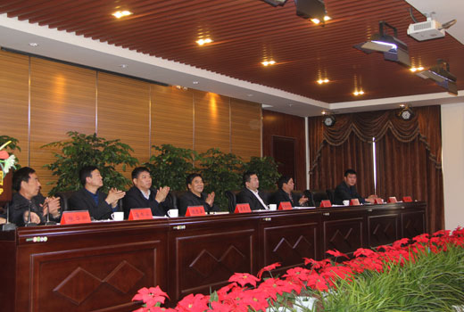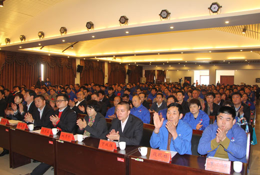 集團(tuán)領(lǐng)導(dǎo)在主席臺(tái)就座 董事長(zhǎng)作工作報(bào)告