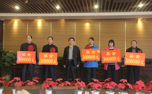 獲獎優(yōu)秀經(jīng)銷商代表張?jiān)讫堊鞯湫桶l(fā)言 獲獎人員領(lǐng)獎 |