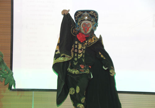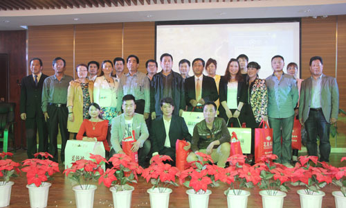 電氣部職工賈云鵬演唱的《精忠報國》 榮獲一等獎的郭會娟正在激情高歌 來自夏風慶典公司精彩節(jié)目《變臉》 職工石俊華演唱的《隱形的翅膀》 來自燒成車間職工余國勝自彈自唱的《站臺》 集團領導為獲獎人員頒獎并合影留念 |