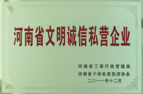 首頁 >> 走進(jìn)大地 >>資質(zhì)榮譽(yù) >> 河南省文明誠信私營企業(yè)