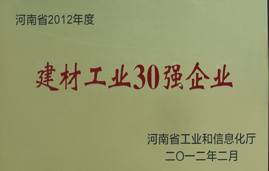 首頁 >> 走進大地 >>資質(zhì)榮譽 >> 河南省2012年度建材工業(yè)30強企業(yè)